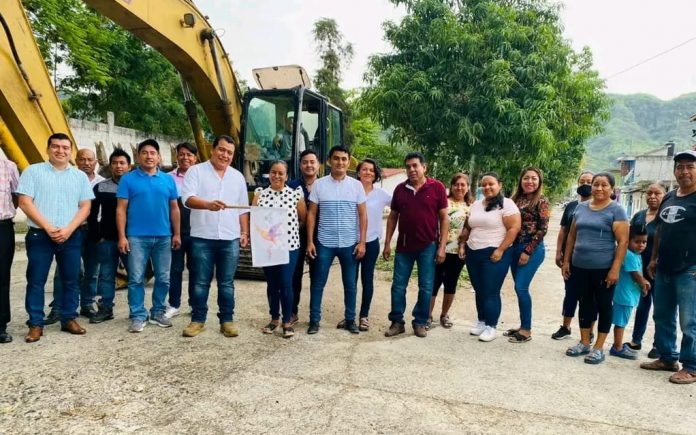 David Meza alcalde de Jalcomulco dio el banderazo de inicio de obra de drenaje, tubería de agua potables y pavimentación en esta arteria antes mencionada la cual se encuentra con severos daños en toda su infraestructura.
