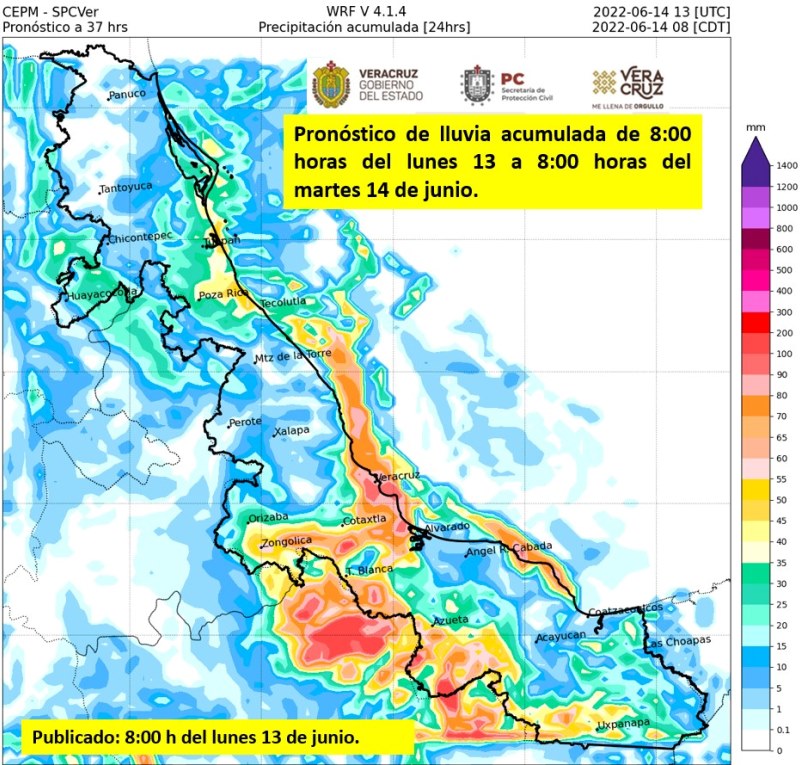 «A partir de este lunes 13 de de junio aumentan las condiciones para lluvias moderadas a fuertes en buena parte del estado.«, advirtió el organismo.