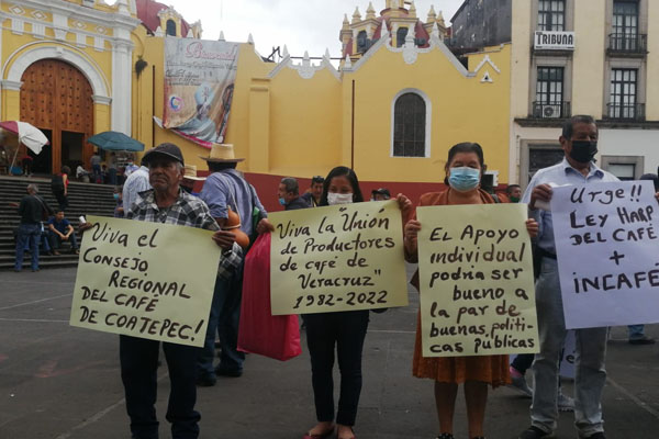 Finalmente, los productores que se manifestaron en la Plaza Lerdo de Xalapa pidieron a la Federación que se cambien las políticas cafetaleras.