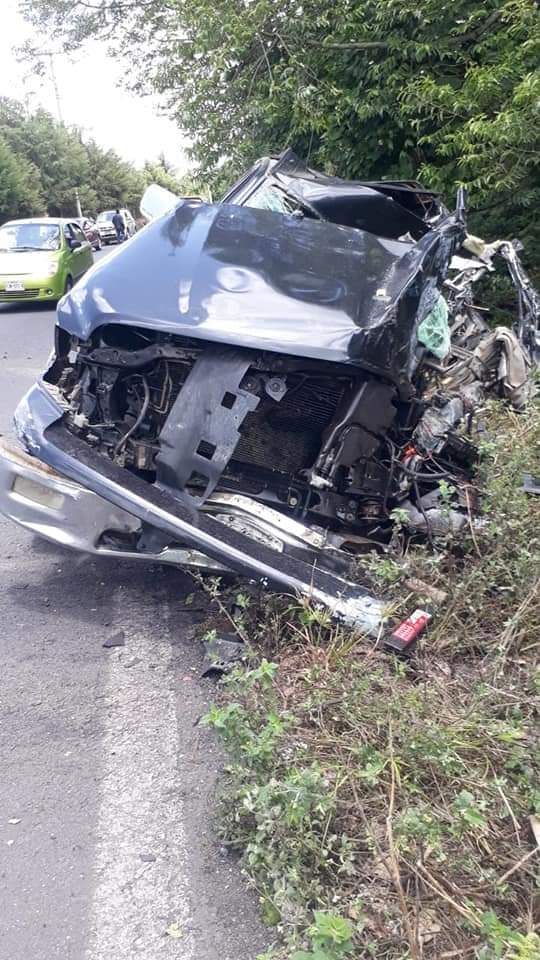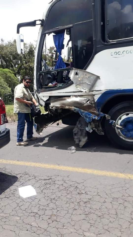 Su automóvil impacto de frente con un camión de pasajeros.