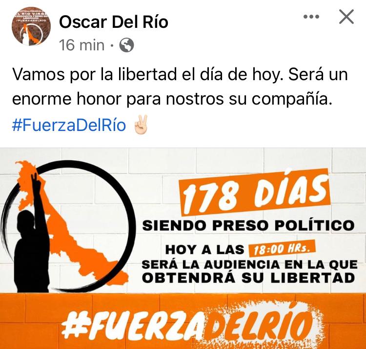 José Manuel del Río Virgen, secretario Técnico de la Junta de Coordinación Política (Jucopo) del Senado preso en el penal de Pacho Viejo, en el municipio de Coatepec, podría quedar en libertad la noche de este viernes luego de pasar seis meses detenido por el homicidio del candidato a la alcaldía de Cazones de Herrera, Remigio René Tovar.