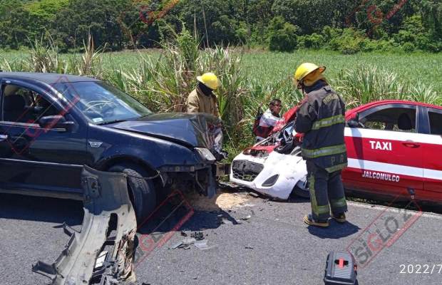 Coatepec, Ver.- Un aparatoso accidente se ha registrado esta tarde en la carretera Xalapa-Totutla, cerca del entronque hacia Jalcomulco, primeros reportes dan cuenta de lesionados graves. Un taxi y un auto particular chocaron de frente.