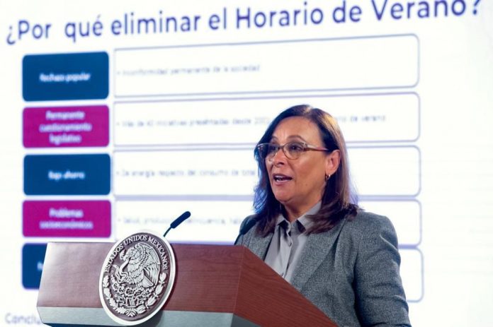 Xalapa, Ver.- La secretaria de Energía, Rocio Nahle informó de la propuesta de eliminar el horario de verano para establecer un horario estacional en los municipios de la frontera norte, además de que el 71 por ciento de los mexicanos avalan esa decisión.