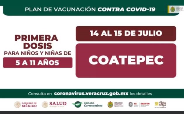 Coatepec, Ver.- A partir del próximo jueves 14 de junio iniciará la aplicación de la vacuna a menores de 5 a 11 años en este municipio, informó el gobernador Cuitláhuac García Jiménez.