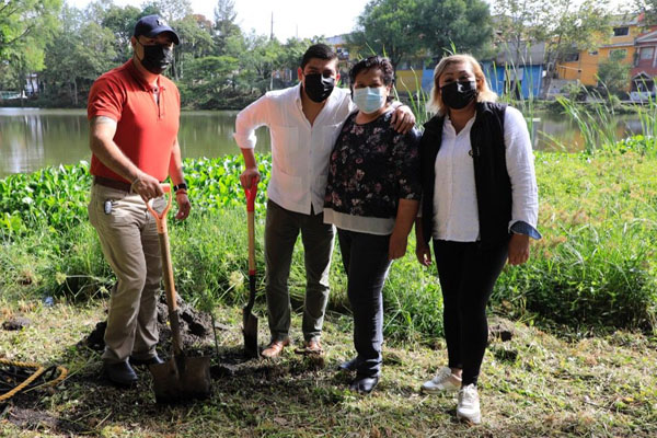 Xalapa, Ver.- Con apoyo de distintas áreas del Ayuntamiento, sociedad y regidores, personal de la Dirección de Medio Ambiente realizó una jornada comunitaria de limpieza y reforestación en la laguna de Casa Blanca, donde se retiró lirio y rehabilitó parte del mobiliario urbano de la zona.