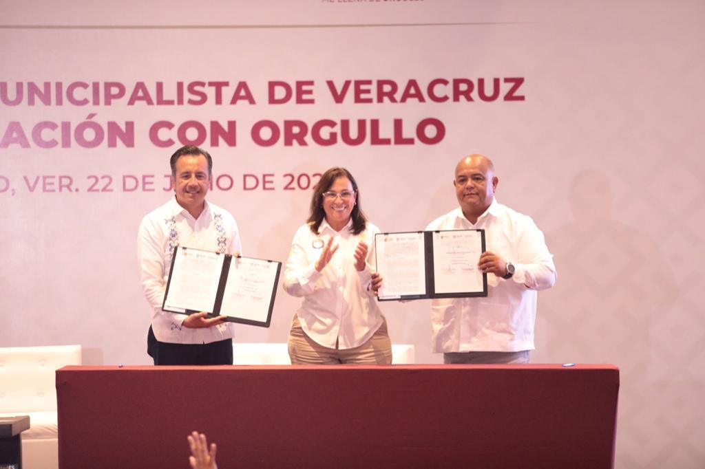 En este marco el Gobierno de Veracruz firmó el Convenio Macro de Colaboración del Instituto Veracruzano de Desarrollo Municipal (INVEDEM) con los munícipes María Esther López Callejas, Actopan; Raymundo Andrade Rivera, Coatepec; Mariela Hernández García, Las Choapas; Óscar Guzmán de Paz, Pánuco, y Eric Domínguez Vázquez, Papantla, para implementar políticas públicas que impulse el desarrollo de estos.