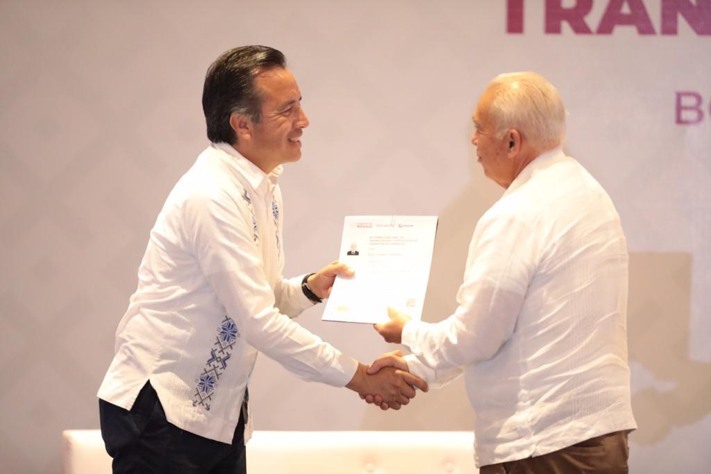 También, el Ejecutivo estatal entregó los certificados de CONOCER a la contralora general, Mercedes Santoyo Domínguez, por el Estándar ECO777 Ejecución de las Atribuciones de la Contraloría Municipal; a los secretarios de los ayuntamientos de Agua Dulce, Jesús Martínez Monroy; Cosamaloapan, Omar Ramírez Uscanga; Martínez de la Torre, Raúl Gámez González y Tuxpan, Daniel Cortina Martínez, por el Estándar ECO401 Liderazgo en el Servicio Público.