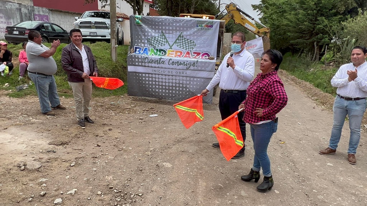Las Vigas, Ver. (SANDY BARRADAS).- El alcalde de Las Vigas de Ramírez, José de Jesús Landa Hernández, asistió este miércoles a la localidad de San Miguel para dar el banderazo de inicio para los trabajos de restauración en la calle principal.