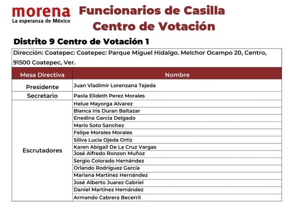 “Nos mandaron a la fuerza pública, tenemos nuestros nombramientos, aparecemos en la página de Morena como acreditados, como escrutadores y el presidente de la mesa no quiere firmarnos el gafete y nos mandaron a la fuerza pública y nos quieren sacar por la fuerza y no es justo”, señaló.