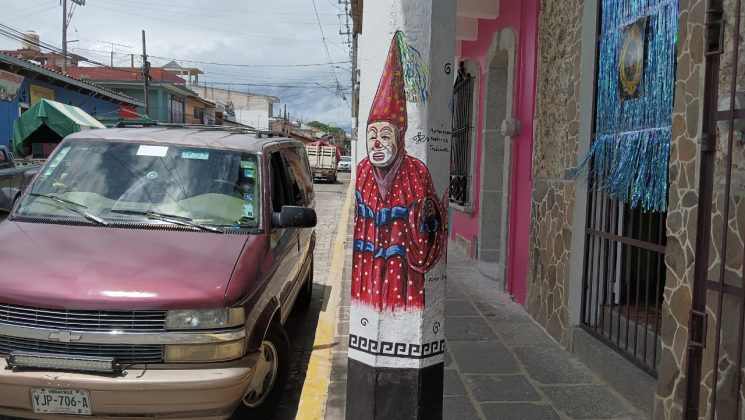 Teocelo, Ver. (SANDY BARRADAS).- Ciudadanos de Teocelo se dieron a la tarea de pintar los postes con motivo de la fauna, la flora y las tradiciones del municipio.