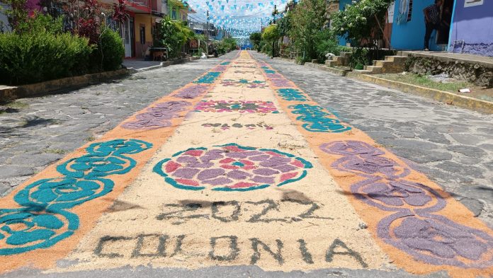 Desde temprana hora, un grupo de vecinos de dicho barrio se dieron a la tarea de realizar la colorida ofrenda.