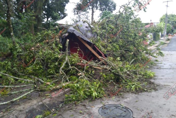 Fue poco después de las siete de la noche de este jueves que el fuerte ruido del árbol desgajándose y el estruendo al caer sobre la estructura de lámina y madera del local comercial, alertó a vecinos del lugar; quienes al ver lo ocurrido llamaron a las corporaciones de auxilio.