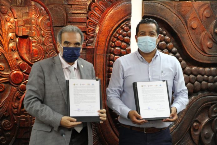 En la firma estuvieron presentes la secretaria académica de la máxima casa de estudios del estado, Elena Rustrián Portilla, y los directores generales del Área Académica de Ciencias Biológicas y Agropecuarias, Arturo Serrano Solís, y de Comunicación Universitaria, Norma Trujillo Báez.