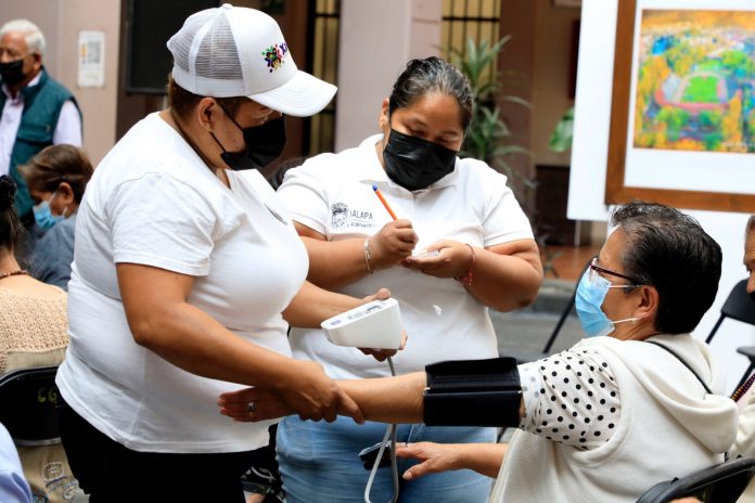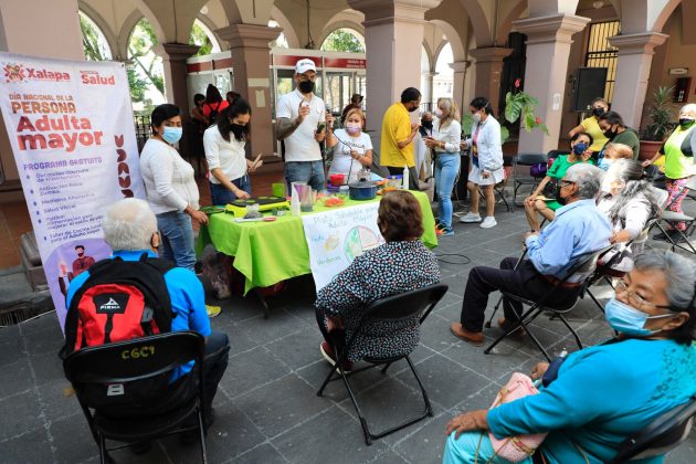 Xalapa, Ver.- En el marco del Día Nacional de la Persona Adulta Mayor, el Ayuntamiento, a través de la Dirección de Salud, realizó una jornada de atención en el patio central del Palacio Municipal, donde se realizaron actividades como estudios para la detección oportuna de hipertensión, sesiones de zumba, difusión de la medicina alternativa, exámenes de salud visual, un taller de cocina saludable y la plática “Alimentación para mejorar el estilo de vida”.