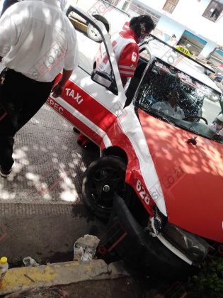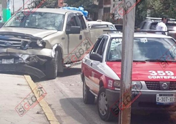 Al parecer una camioneta chocó por alcance contra un taxi de Coatepec con número económico 359.