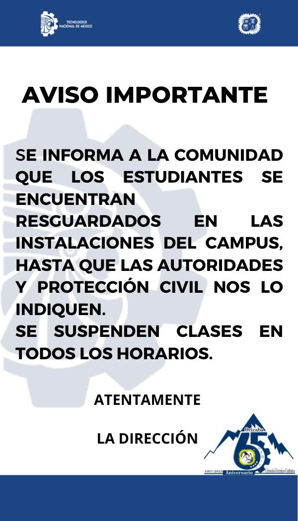 El Instituto Tecnológico de Monterrey, campus Orizaba «resguardó» a los estudiantes dentro del plantel.