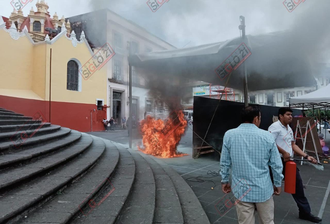 Xalapa, Ver.- Tremendo susto se llevaron peatones y público en general, cuando esté lunes explotó una planta generadora de luz que sería utilizada para las fiestas del Grito de Independencia en la plaza Lerdo.
