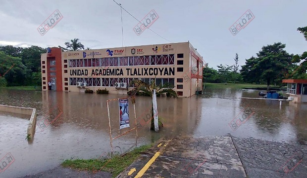 Tlalixcoyan, Ver. (Sergio Francisco Palencia).- Inundada, amaneció parte de la zona centro de Tlalixcoyan al desbordarse el río del mismo nombre, mientras que el río Cotaxtla también se ha desbordado afectando la Unidad Académica de Tlalixcoyan.