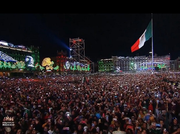 Ante decenas de miles de mexicanas y mexicanos ubicados en el Zócalo, López Obrador hizo sonar la campana y posteriormente, el mandatario y todo el público pudieron disfrutar los juegos pirotécnicos.