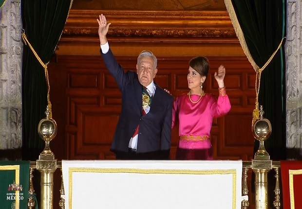Acompañado de su esposa, la señora Beatriz Gutiérrez Müller, el presidente de México, Andrés Manuel López Obrador, desde el balcón principal del Palacio Nacional dio el Grito de Independencia.