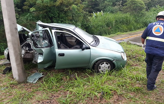 Presuntamente el automóvil se subió al camellón y chocó contra un poste de concreto, para finalmente quedar destruido.
