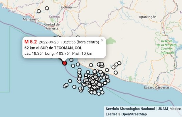 Hasta las 14:00 horas del 23/septiembre/2022 se han registrado 1,650 réplicas del sismo de M 7.7 ocurrido en Michoacán el 19/septiembre/2022, la más grande de M 6.9.