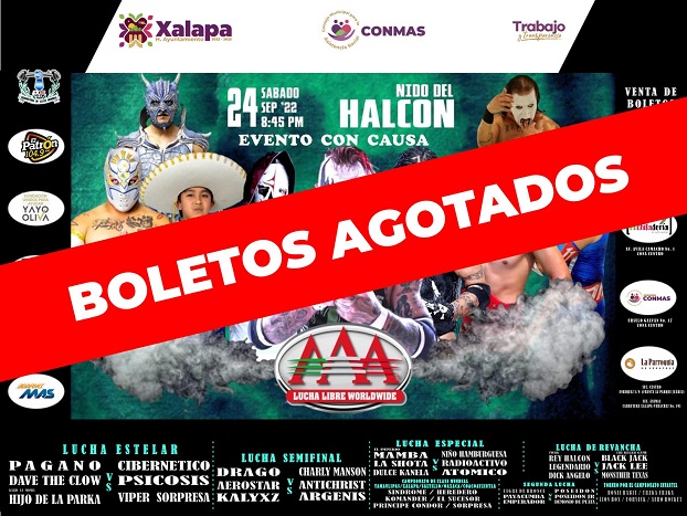 Xalapa, Ver.- El Consejo Municipal para la Asistencia Social (CONMAS) informa que el boletaje para el espectáculo de lucha libre AAA de esta noche, está agotado.