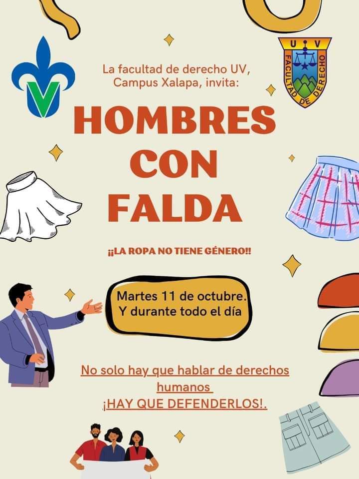 Xalapa, Ver.- Porque «la ropa no tiene género», la facultad de Derecho de la UV invita a los hombres a asistir este martes 11 de octubre con falda.