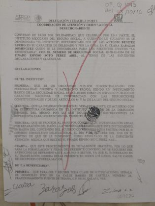 Señaló que a pesar de que los hechos no estaban comprobados, el IMSS decidió pagar a la viuda una indemnización causando un daño patrimonial al propio instituto, firmando un convenio de pago con la viuda e hijos, durante la administración de Antonio Benítez Lucho.