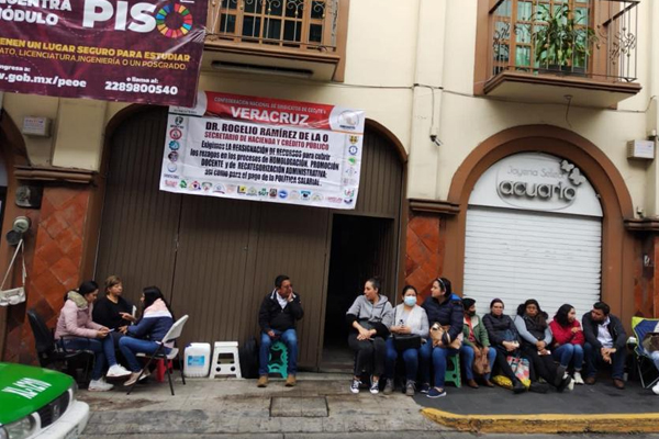 Con pancartas hicieron un llamado al Secretario de Hacienda, Rogelio Ramírez de la O en donde dejan en claro que se busca cubrir rezagos en los procesos de homologación y promoción docente.