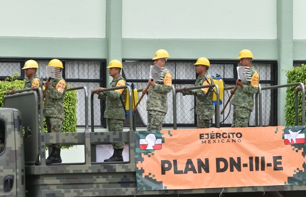 La autoridad militar informó que, derivado de este fenómeno natural, se desplegaron a 2,524 elementos militares y de la Guardia Nacional, 125 vehículos, 12 automotores de maquinaria pesada, 2 cocinas comunitarias, así como 2 aeronaves de ala rotativa, en las entidades federativas antes señaladas, realizándose las siguientes acciones: