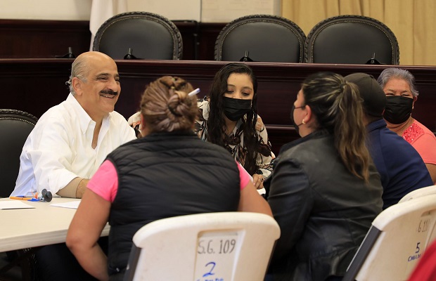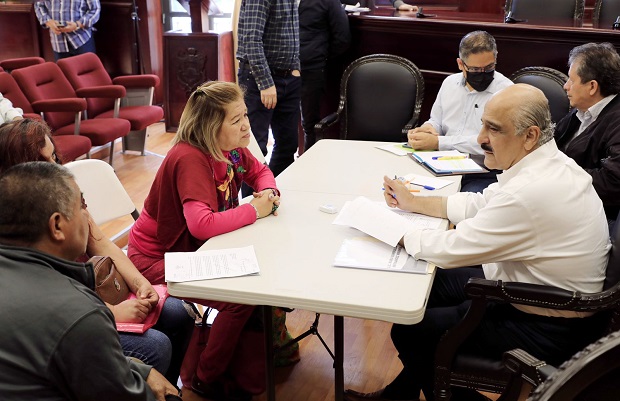 En la Sala de Cabildo, acompañado por los regidores Antonio Ballesteros Grayeb y Daniel Fernández Carrión; el director de Participación Ciudadana, Juan Marín Viveros, y el subdirector de Planeación y Proyectos, Gerardo Lobato Guzmán; el Edil canalizó las solicitudes a las áreas correspondientes.