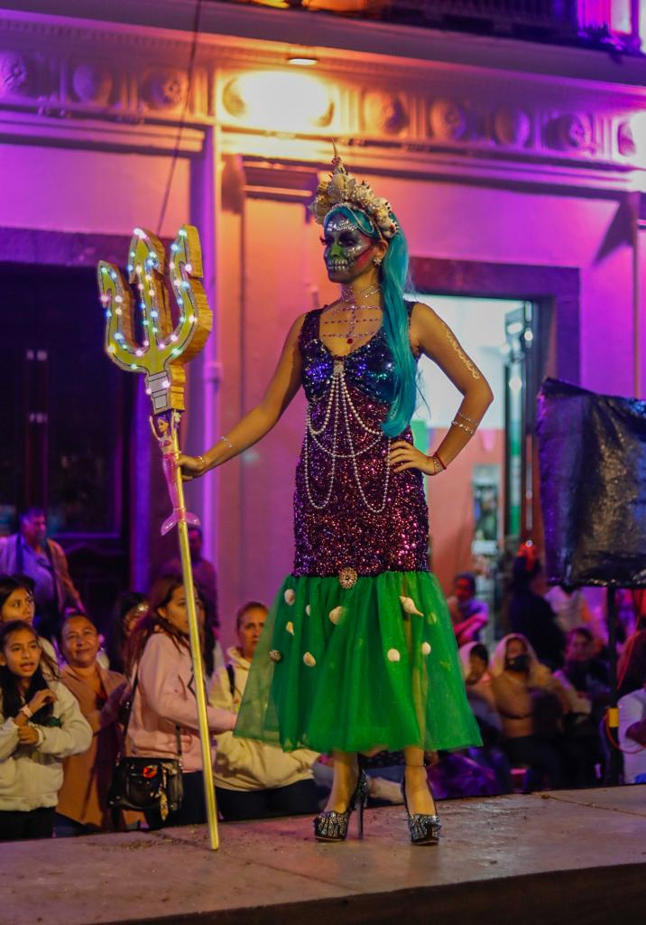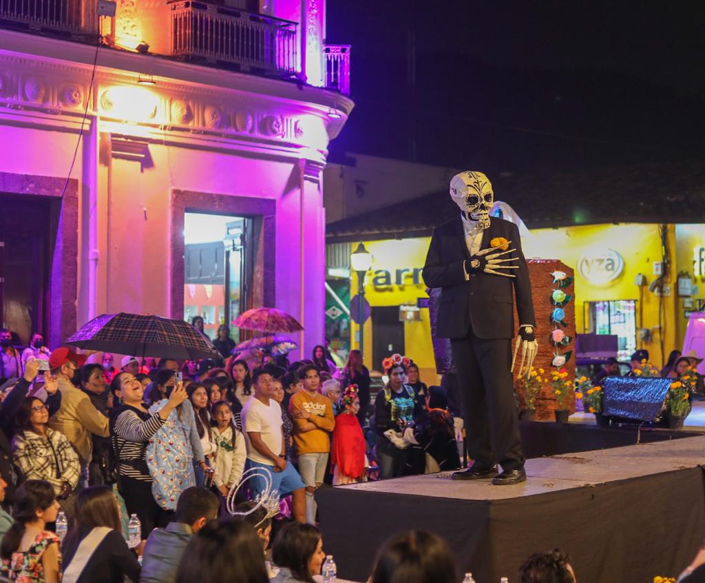 Coatepec, Ver.- Algarabía y júbilo causaron las y los participantes al concurso de Catrinas y Catrines 2022 en este Pueblo Mágico, donde la representación de estos personajes causó gran expectativa y emoción entre los asistentes.