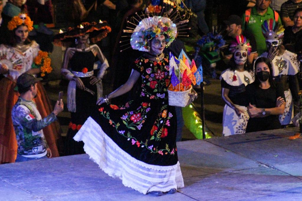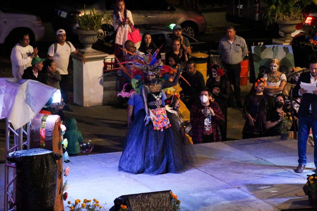 La explanada del parque Miguel Hidalgo, frente al Palacio Municipal vivió una noche muy tradicional al llevar a cabo diversas actividades apegadas al día de muertos, por lo que familias pudieron disfrutar de estas acciones y reconocieron la labor de la síndica Linda Rubí Martínez, quien se encargó en gran medida de la organización del evento, todo con la finalidad de mantener vivas las culturas y costumbres mexicanas.