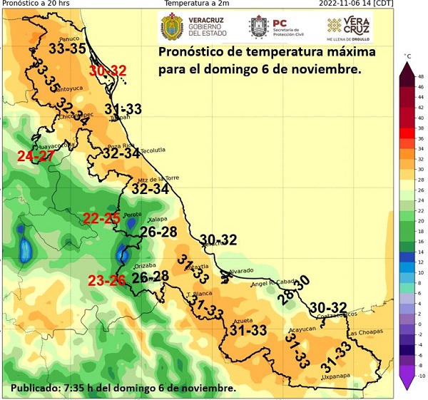 Xalapa, Ver.- Para este domingo se prevé ambiente caluroso al mediodía y primeras horas de la tarde, informó esta mañana el Centro de Estudios y Pronósticos Meteorológicos del Estado de Veracruz.