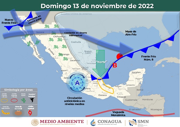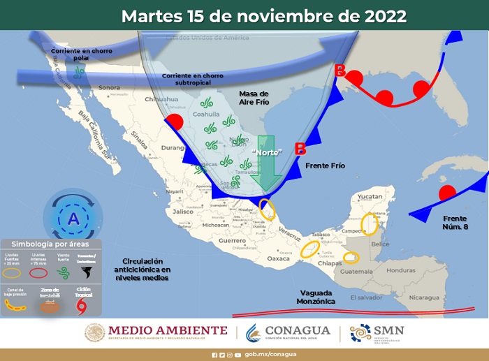 El viento del «Norte», con rachas de 58 Km/h ya se comienza a sentir este medio día en la zona conurbada Veracruz-Boca del Río como consecuencia del paso del Frente Frío número 8; el Servicio Meteorológico Nacional pronosticó que para mañana domingo en el Estado de Veracruz podrían presentarse intervalos de chubascos con lluvias puntuales fuertes, pudiendo continuar hasta el lunes