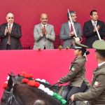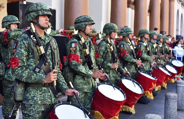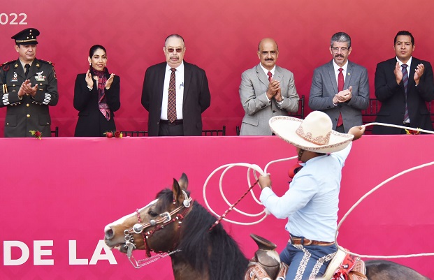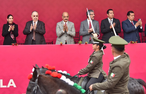 Acompañando por la presidenta del Tribunal Superior de Justicia y del Consejo de la Judicatura, Magistrada Isabel Inés Romero Cruz; la presidenta de la Mesa Directiva de la LXVI Legislatura, Diputada Margarita Corro Mendoza; integrantes del Gabinete estatal y autoridades navales y militares, el Edil atestiguó el paso de los contingentes conformados por elementos de la Dirección General de Tránsito y Seguridad Vial del Estado, de la Secretaría de la Defensa Nacional (Sedena) y la Guardia Nacional (GN).