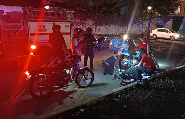 Coatepec, Ver.- Un repartidor de pizza resultó con diversas lesiones luego que fuera atropellado cerca de la gasolinería «Texín» de Coatepec esta noche; paramédicos del Cuerpo de Bomberos le brindaron los primeros auxilios.