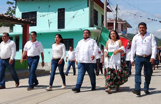 El Desfile inició con una columna encabezada por el Ayuntamiento de este municipio, encabezada por Gustavo Flores Colorado presidente municipal y autoridades ejidales.