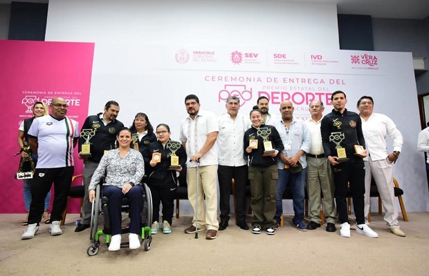 Veracruz, Ver.- La paranadadora Naomi Somellera Mandujano, la clavadista Samantha Jiménez Santos; el entrenador de paratletismo, Rubén Arrieta Reyes; el jefe de entrenadores de la Selección Juvenil de Tae Kwon Do, Abel Jesús Mendoza Mora, y la Asociación de Deportistas Intelecdown de Veracruz, recibieron el Premio Estatal del Deporte 2022 otorgado por el Gobierno del Estado.