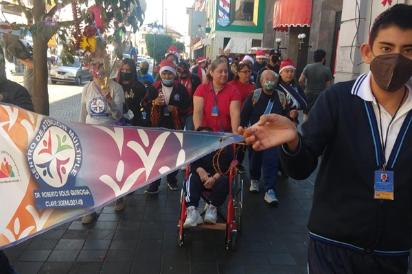 Xalapa, Ver. (Enrique Yasser Pompeyo).- Estudiantes del Centro de Atención Múltiple (CAM) «Dr. Roberto Solís Quiroga» salieron a cantar “La Rama” a las calles del centro de Xalapa con la finalidad de preservar las tradiciones navideñas, así como para recaudar fondos para los festejos de Día de Reyes.