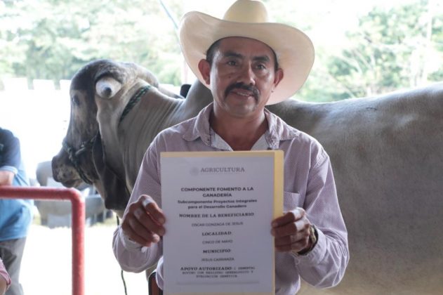 Jesús Carranza, Ver.- Más de 260 productores de Isla, Juan Rodríguez Clara, José Azueta, Playa Vicente, Oluta, San Juan Evangelista, Jesús Carranza y Uxpanapa recibieron ganado bovino de alto valor genético, además de material agrícola esto último con una inversión de casi 2 millones de pesos para reactivar y fortalecer al sector primario en el Istmo de Tehuantepec.