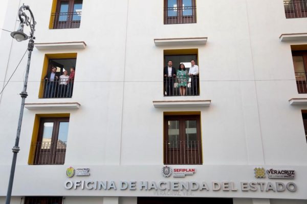 Veracruz, Ver.- Después de 10 años pagando renta, la Oficina de Hacienda del Estado regresó a su ubicación original sobre la calle Benito Juárez esquina con Avenida 5 de Mayo en el centro histórico, de esta manera se ofrecerán más y mejores servicios a las y los contribuyentes jarochos a partir de este miércoles, horario de 8 a 14 horas.