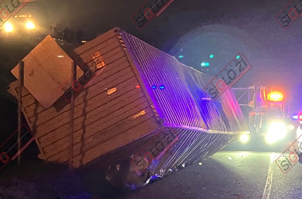 Xalapa, Ver.- Luego de que un tráiler que transportaba línea blanca se volcara en la carretera Xalapa – Perote, elementos de la Policía Estatal y Guardia Nacional lograron evitar la rapiña.