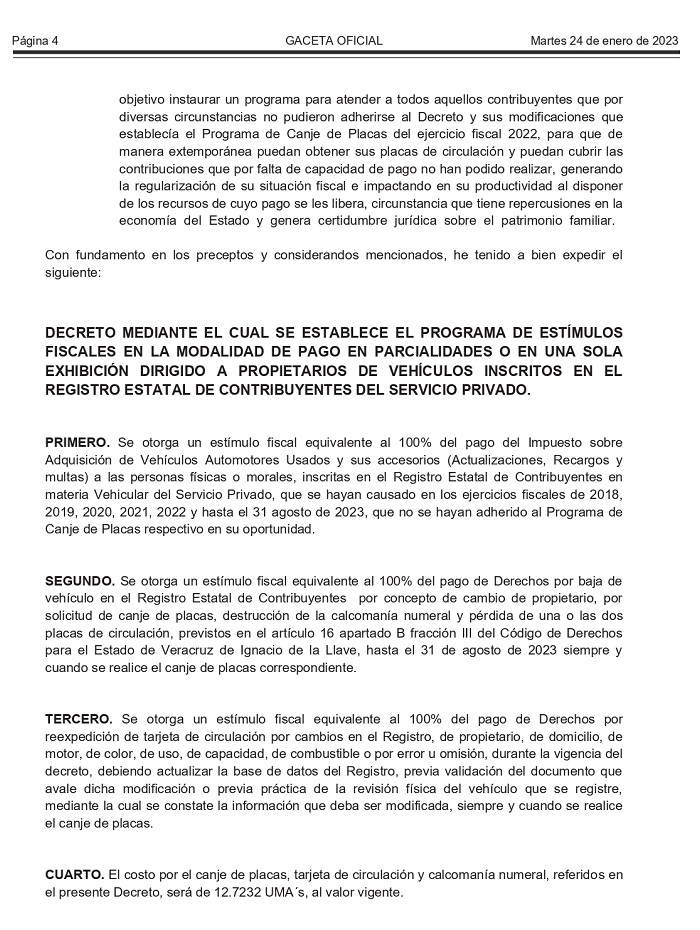 Xalapa, Ver.- El Gobierno de Veracruz estableció a través de un decreto publicado en la Gaceta Oficial del Estado un programa para el canje de placas vehiculares que datan de 2016 hacia atrás, a través del pago de parcialidades.