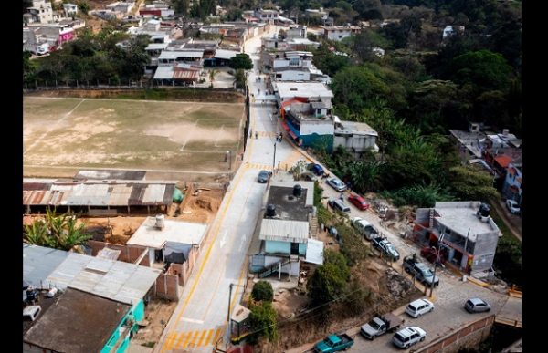 La pavimentación de la calle Vicente Guerrero comprende la construcción de guarniciones, banquetas, muro de contención y mil 521 metros cuadrados de concreto hidráulico, además de la rehabilitación del alcantarillado sanitario y el enmallado del campo deportivo, con lo que se beneficia a cerca de 2 mil 500 habitantes.