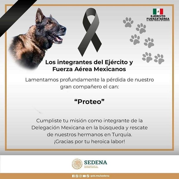 Xalapa, Ver. (Sandy Barradas).- Activistas de animales lamentaron el fallecimiento de Proteo, perro mexicano que se encontraba realizando labores de rescate en Turquía.