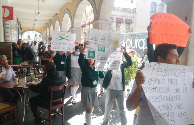 Xalapa, Ver. (Enrique Yasser Pompeyo).- Padres de familia y estudiantes de la escuela telesecundaria Frida Kahlo, que se ubica en el Fraccionamiento Cuatro Soles del municipio de Naolinco exigen a las autoridades un terreno para la construcción de su colegio.