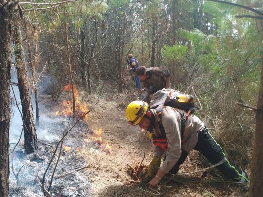 En videos publicados en sus redes sociales se advierte el combate a las llamas que alcanzan la copa de árboles, mientras brigadistas intentan contener su avance.