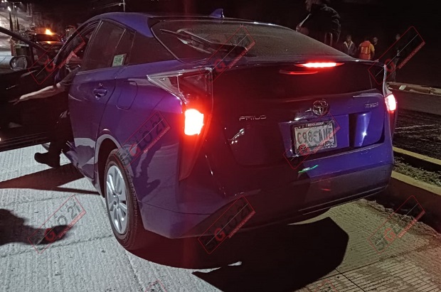 Se trató de un Toyota Prius color azul marino con placas de la Ciudad de México con terminación «ANE», el cual era conducido por una mujer de aproximadamente 45 años de edad y con una copiloto de mayor edad.